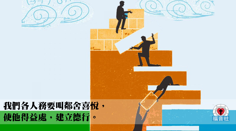 1我們堅固的人應該擔代不堅固人的軟弱,不求自己的喜悅。2我們各人務要叫鄰捨喜悅,使他得益處,建立德行。3因為基督也不求自己的喜悅,如經上所記:「辱罵你人的辱罵都落在我身上。」4從前所寫的聖經都是為教訓我們寫的,叫我們因聖經所生的忍耐和安慰可以得著盼望。5但願賜忍耐安慰的上帝叫你們彼此同心,效法基督耶穌,6一心一口榮耀上帝-我們主耶穌基督的父!
