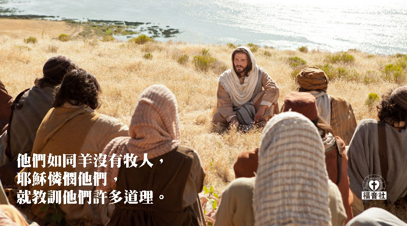30使徒聚集到耶穌那裏,將一切所做的事、所傳的道全告訴他。31他就說:「你們來,同我暗暗地到曠野地方去歇一歇。」這是因為來往的人多,他們連吃飯也沒有工夫。32他們就坐船,暗暗地往曠野地方去。33眾人看見他們去,有許多認識他們的,就從各城步行,一同跑到那裏,比他們先趕到了。34耶穌出來,見有許多的人,就憐憫他們,因為他們如同羊沒有牧人一般,於是開口教訓他們許多道理。