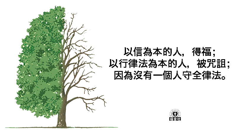 7所以,你們要知道:那以信為本的人,就是亞伯拉罕的子孫。8並且聖經既然預先看明,上帝要叫外邦人因信稱義,就早已傳福音給亞伯拉罕,說:「萬國都必因你得福。」9可見那以信為本的人和有信心的亞伯拉罕一同得福。10凡以行律法為本的,都是被咒詛的;因為經上記著:「凡不常照律法書上所記一切之事去行的,就被咒詛。」11沒有一個人靠著律法在上帝面前稱義,這是明顯的;因為經上說:「義人必因信得生。」12律法原不本乎信,只說:「行這些事的,就必因此活著。」13基督既為我們受了咒詛,就贖出我們脫離律法的咒詛;因為經上記著:「凡掛在木頭上都是被咒詛的。」14這便叫亞伯拉罕的福,因基督耶穌可以臨到外邦人,使我們因信得著所應許的聖靈。